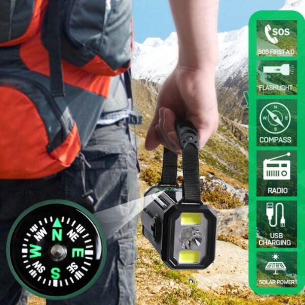 Nouzové solární rádio UFUZON Ishiva 10000mAh, ruční klika a provoz na baterie