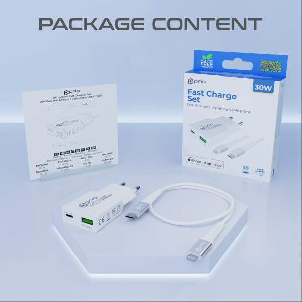 MFi certifikovaná rychlonabíjecí sada 30W duální nabíječka + kabel Lightning-USB-C