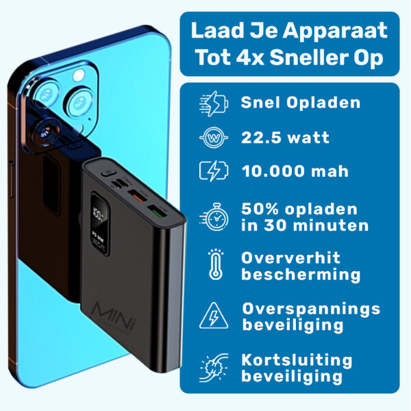 UFUZON Ishiva Mini Power Bank 10000 mAh, PD 22,5W Rychlé nabíjení QC 3.0 USB-C