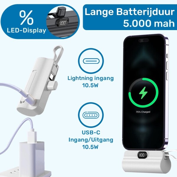 UFUZON Ishiva Mini Power Bank 5000 mAh USB-C, Bezdrátová přenosná nabíječka