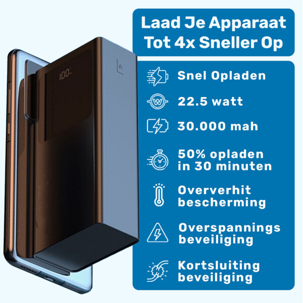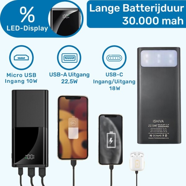UFUZON Ishiva powerbanka 30000mAh, 22,5W rychlé nabíjení QC 3.0 USB-C