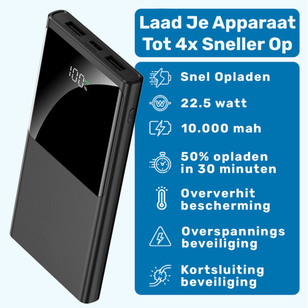 Ufuzon Power Bank 10000 mAh, PD 22,5W Rychlé nabíjení QC 3.0 USB C
