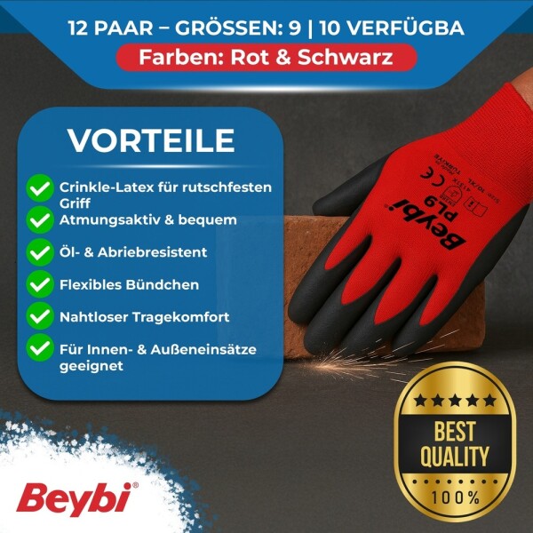 Beybi | 12 Paar Arbeitshandschuhe – Polyester, Latex-beschichtet, rutschfest