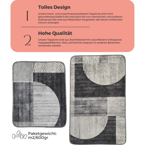 Miqna 2-tlg. rutschfeste Badteppich Set, waschbar (60x100 & 50x60 cm)