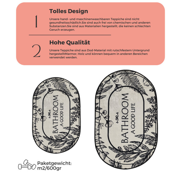 Miqna 2-tlg. rutschfeste Badteppich Set, waschbar (60x100 & 50x60 cm)