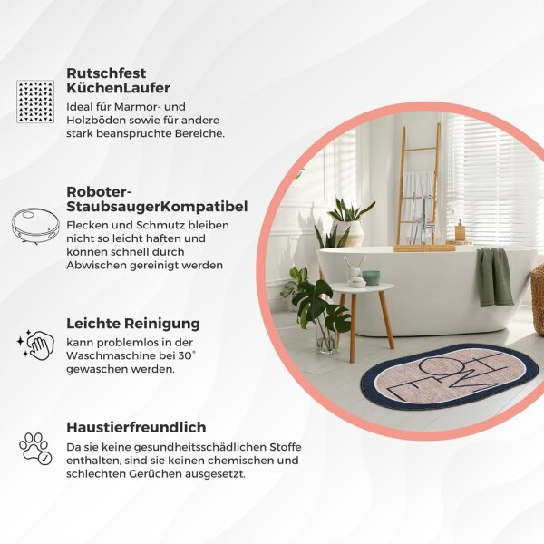 Miqna 2-tlg. rutschfeste Badteppich Set, waschbar (60x100 & 50x60 cm)