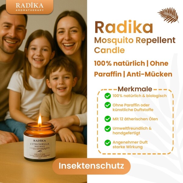 Mosquito Repellent Candle, Anti Mücken Kerze, 100% Rein, BIO, natürlich, 100 gr