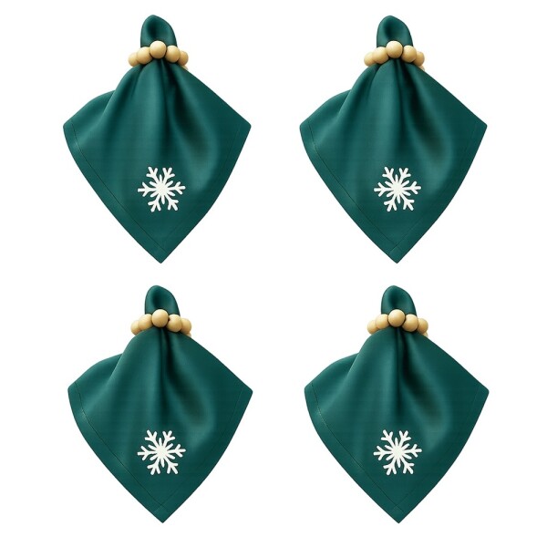 Stoffservietten Weihnachten 4er Set Zümrütgrün Schneeflocken-Stickerei 35x35 cm