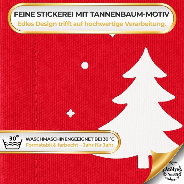 Dieser glanzvolle Tischläufer mit Weihnachtsmotiven, fleckenresistenter Funktion und goldenen Details ist die perfekte Wahl für Ihre Festtagsdekoration. Auch als Geschenk für Ihre Liebsten ist er eine ausgezeichnete Idee!