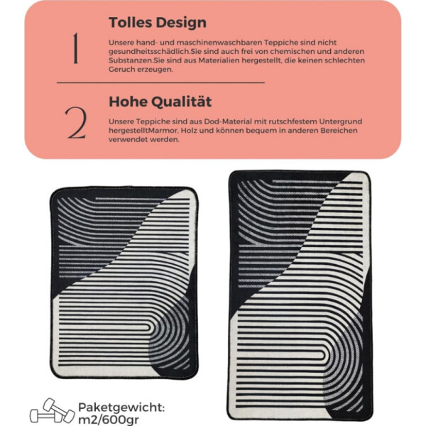 Set tappetini da bagno antiscivolo Miqna da 2 pezzi, lavabili (60x100 e 50x60 cm)
