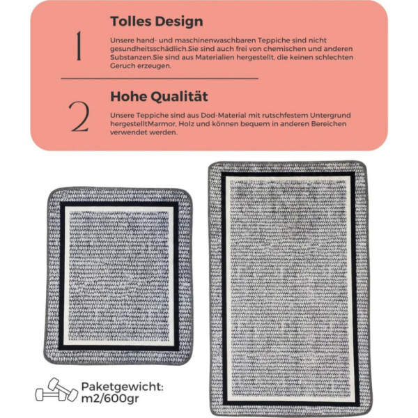 Set tappetini da bagno antiscivolo Miqna da 2 pezzi, lavabili (60x100 e 50x60 cm)