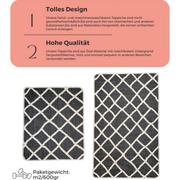 Set tappetini da bagno antiscivolo Miqna da 2 pezzi, lavabili (60x100 e 50x60 cm)