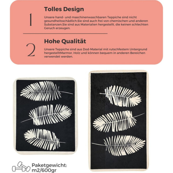 Set tappetini da bagno antiscivolo Miqna da 2 pezzi, lavabili (60x100 e 50x60 cm)