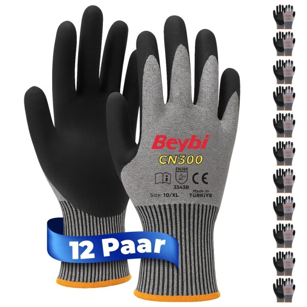 Beybi | 12 par rękawic roboczych, powlekanych nitrylem w 1/2, wytrzymałych